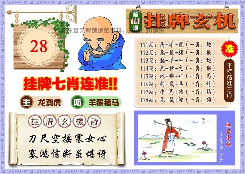 | 118期六肖 | 鸡猪虎兔猴马 | 猪31中 |